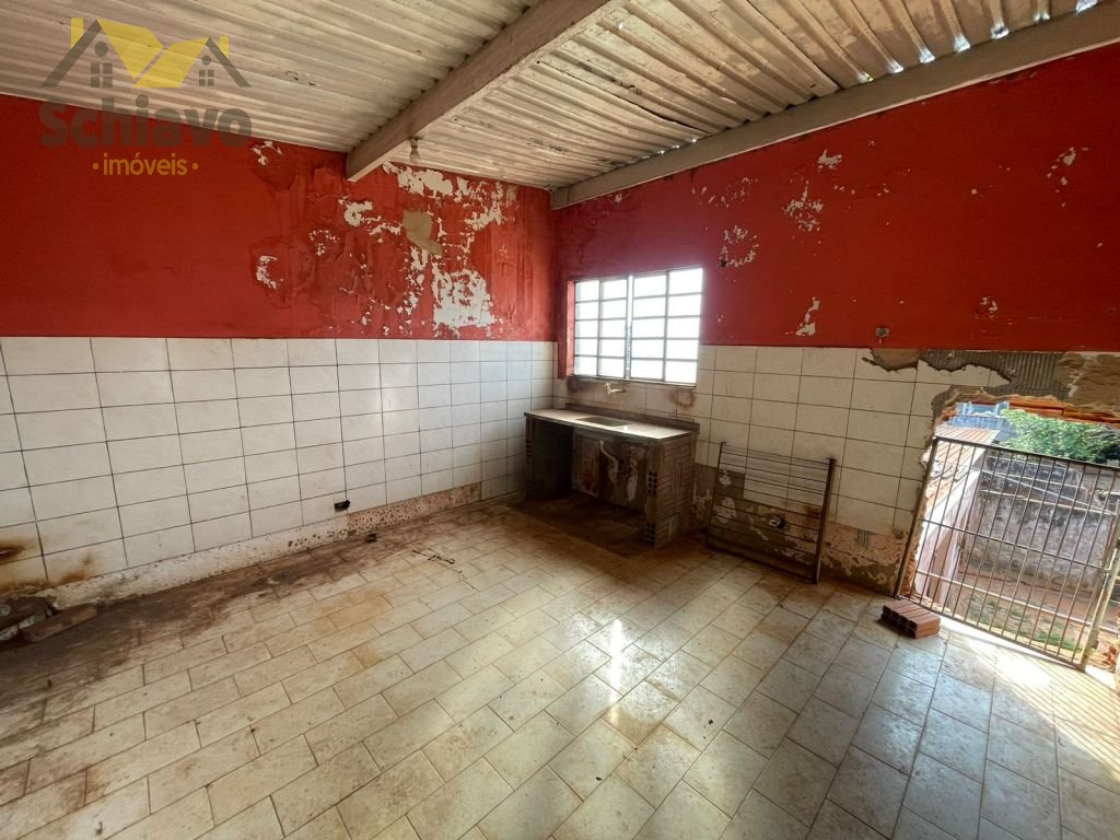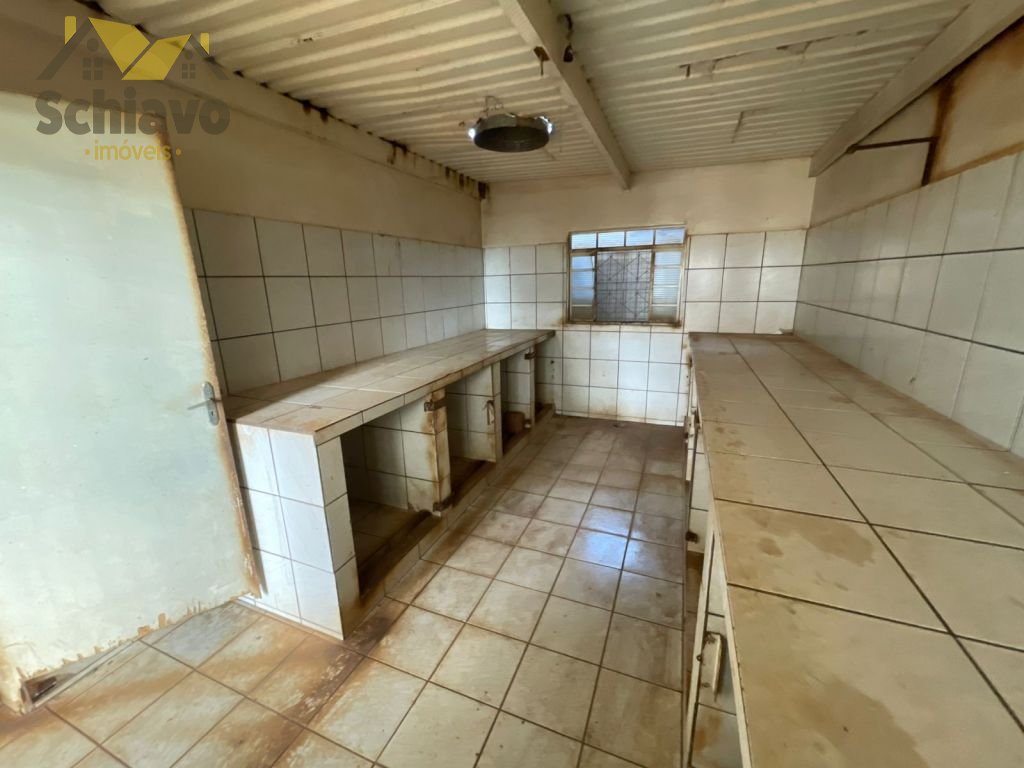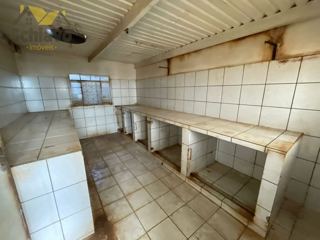 Salão Amplo; 04 salas; 02 cozinhas; 01 banheiro; Área com repartições para animais.